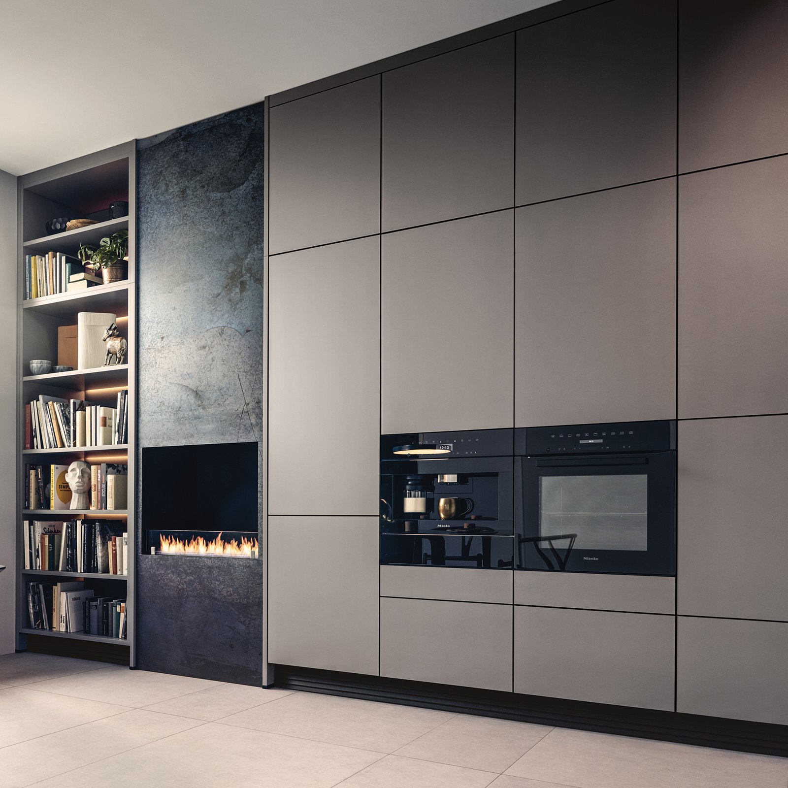Küche ist ein so spannendes Feld, wenn es um Formensprache geht. Man nehme: die extra hohe Korpushöhe von 87,5 cm, kombiniere sie mit einem besonders niedrigen Sockel und lasse die Griffe weg – et voilà – der kubische Traum aller Puristen ist geboren!