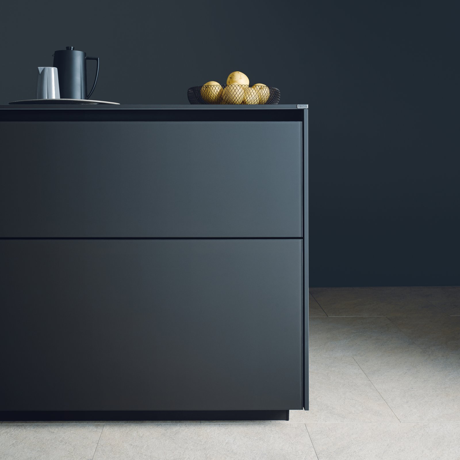 Einen eleganten Auftritt durch reduzierte Linienführung ermöglicht unsere single line-Frontoptik. So entsteht ein Frontbild, das als Weiterentwicklung einer noch klareren Formensprache, konsequenteren Linienführung und sachlicheren Reduktion zu sehen ist. Diese Ausführung beschränkt sich auf nur ein horizontales Griffmuldenprofil unter der Arbeitsplatte, über das der erste Schubkasten oder Auszug geöffnet wird. Die darunter liegenden Schubkästen/Auszüge werden durch den Einsatz des mechanischen Schub-/Zug-Öffnungssystems TIP-ON geöffnet. Dadurch erzielt man eine gestalterisch interessante, reduzierte Frontansicht.