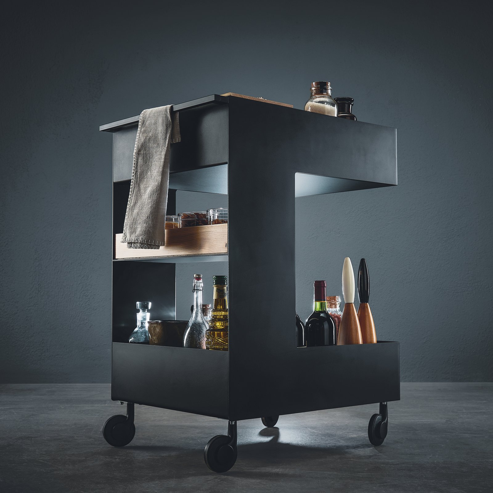 Der next125 Trolley ist multifunktional, mobil und zeitlos-elegant. Lassen Sie sich von seiner Wandelbarkeit überzeugen: als Küchen-, Servier- oder Bartrolley.
