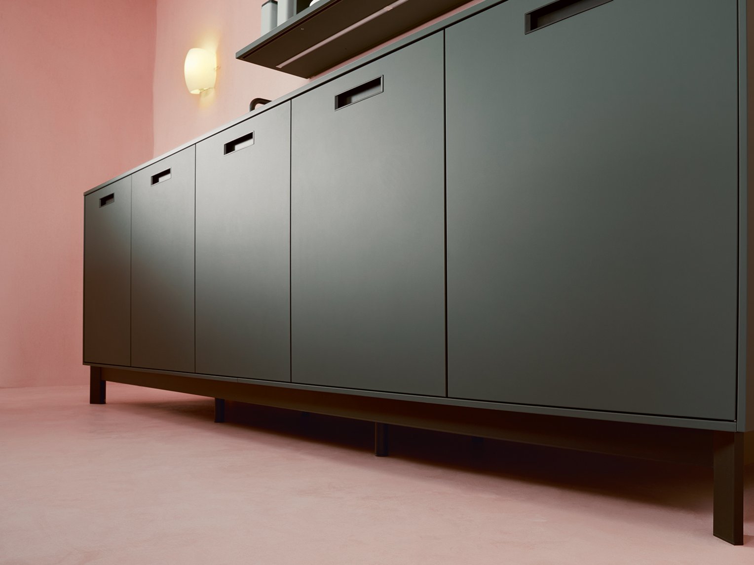 Die multifunktionalen next125 Sideboards wirken durch ihre klare Bauweise fast schwebend; gleichzeitig unterstreicht der filigrane Unterbau die kubische Architektur. Sie können mit einem Gestell oder mit Gestellfüßen in Onyxschwarz kombiniert werden.