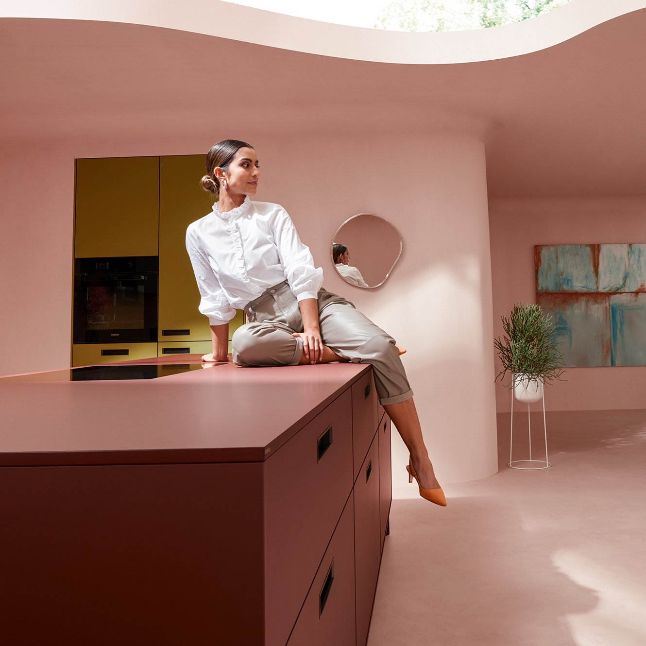 Ein weiteres Beispiel ist next125 Frame. Frei nach dem Leitmotiv „form follows function“ schmiegt sich das Organisationswunder natürlich in die Nische und dient als eleganter Akzent über der Arbeitsplatte.