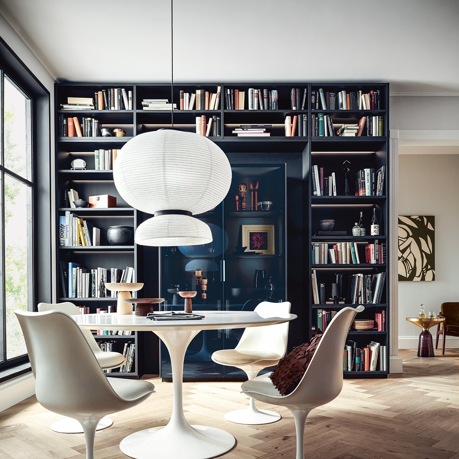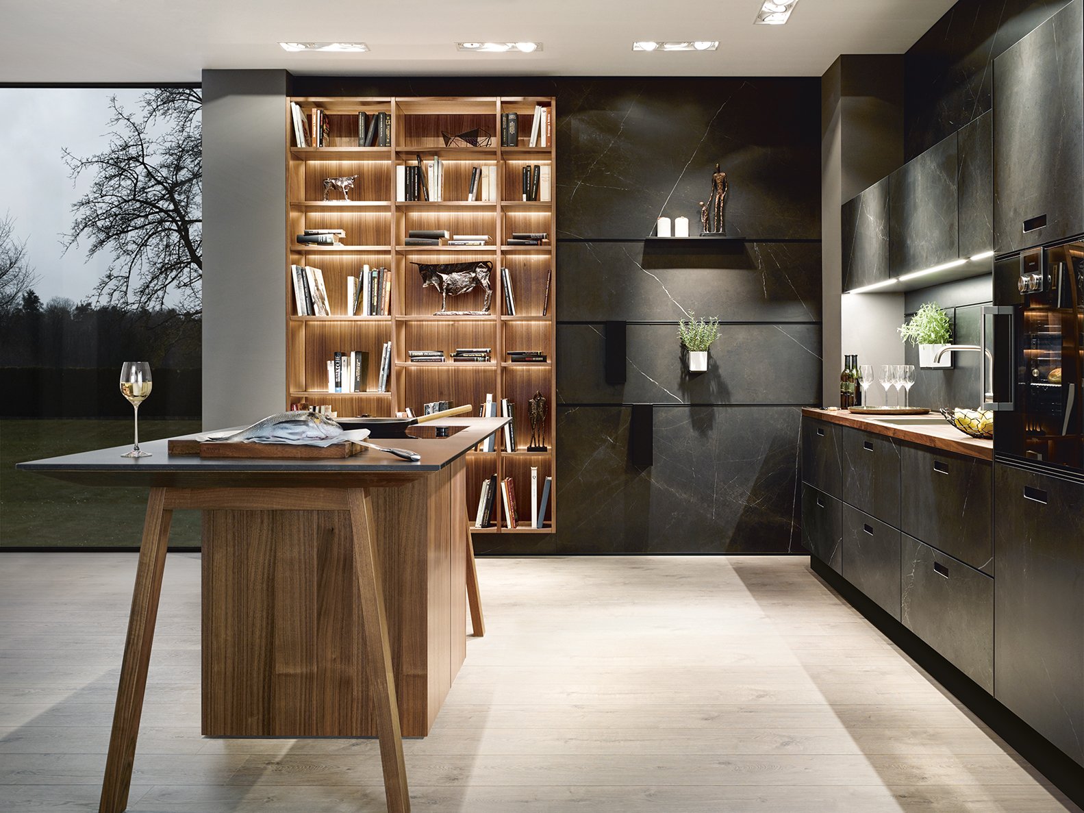 Für den schnellen Zugriff auf die meistgebrauchten Kochutensilien, zur Integration der kompletten Bibliothek oder schlicht als dekorativer Aspekt: Mit dem Einsatz von Regalen stehen alle Möglichkeiten offen.
