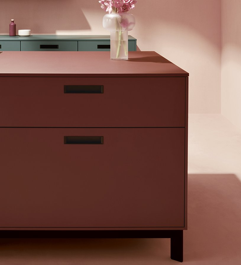 Farben sorgen für Leichtigkeit, Lebendigkeit und unterstreichen die Persönlichkeit der Bewohner. Aus diesem Grund ist bei next125 die sorgfältig kuratierte Palette hochwertiger Lacke Dreh- und Angelpunkt des Designs. Sie begeistert mit einer stimmigen Farbwelt, zusammengefasst in drei Farbkategorien, die sowohl in der Küche als auch im Wohnbereich Anwendung findet.