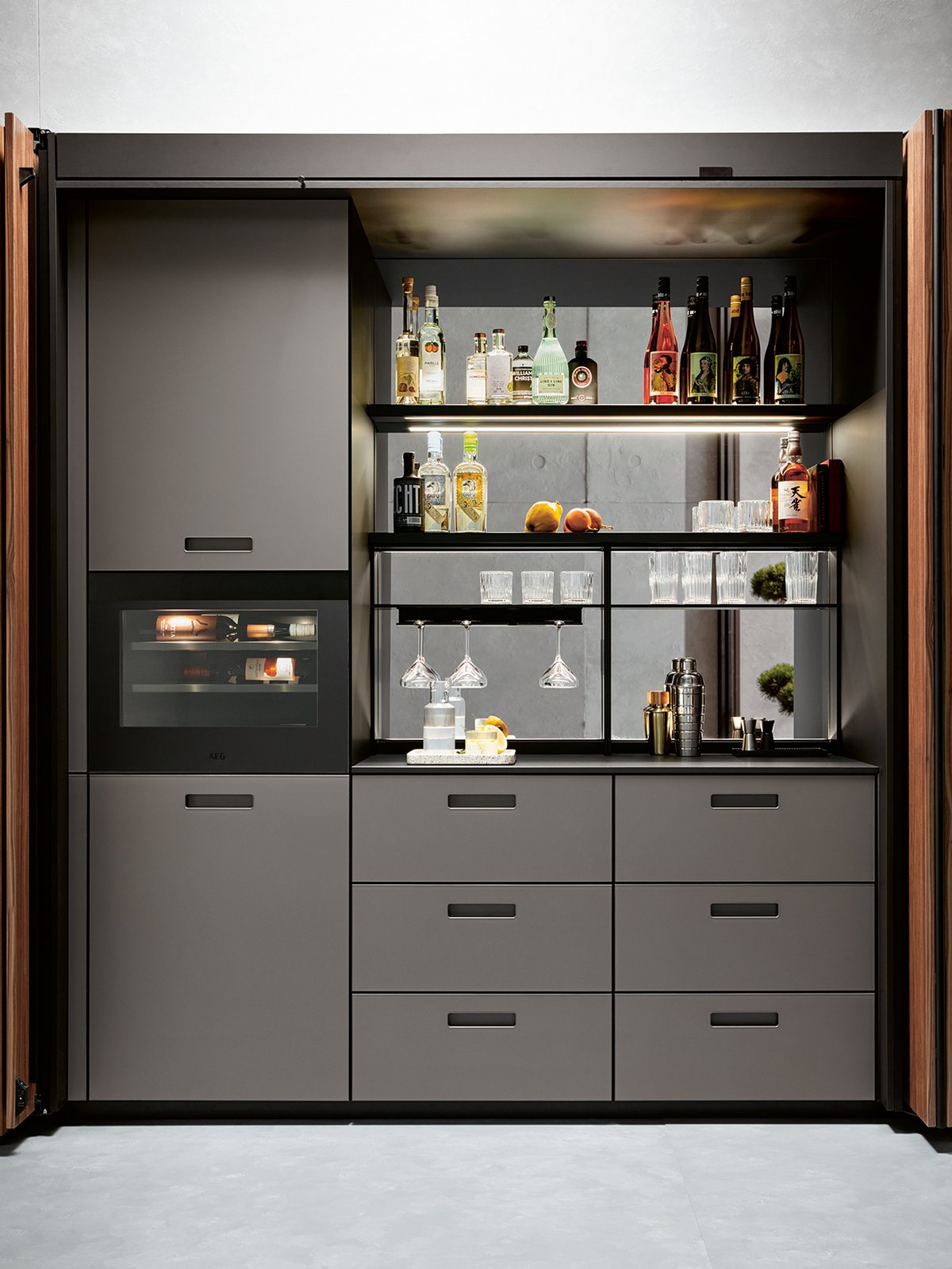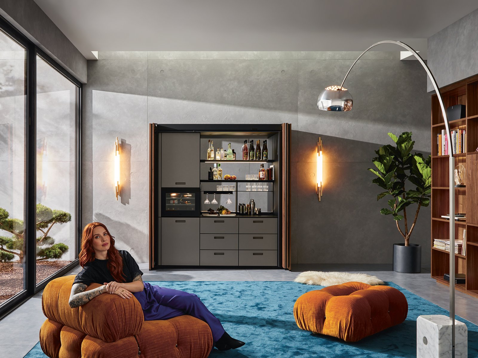 Le Pocketsystem séduit également en tant qu’élément unique : avec son bar et sa niche miroir, chaque soirée entre amis devient une expérience empreinte d’élégance.