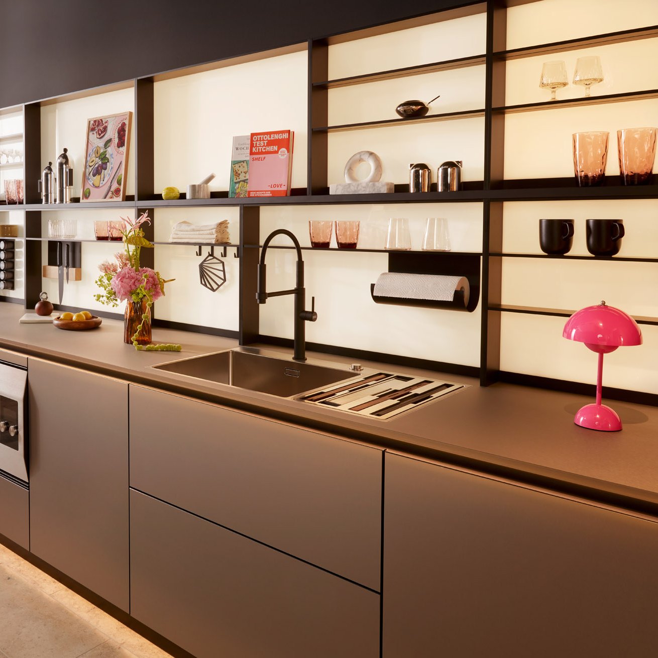 Le next125 Frame est un véritable atout en matière de style, qui offre à la cuisine espace de rangement et structure. Librement inspiré de la devise « form follows function », cette merveille d’organisation s’intègre naturellement à la crédence, apportant une touche élégante au dessus du plan de travail. Diverses options de rangement se combinent habilement avec ce système. Les épices et les couteaux peuvent notamment être disposés dans le Frame pour un effet pratique et visuel.