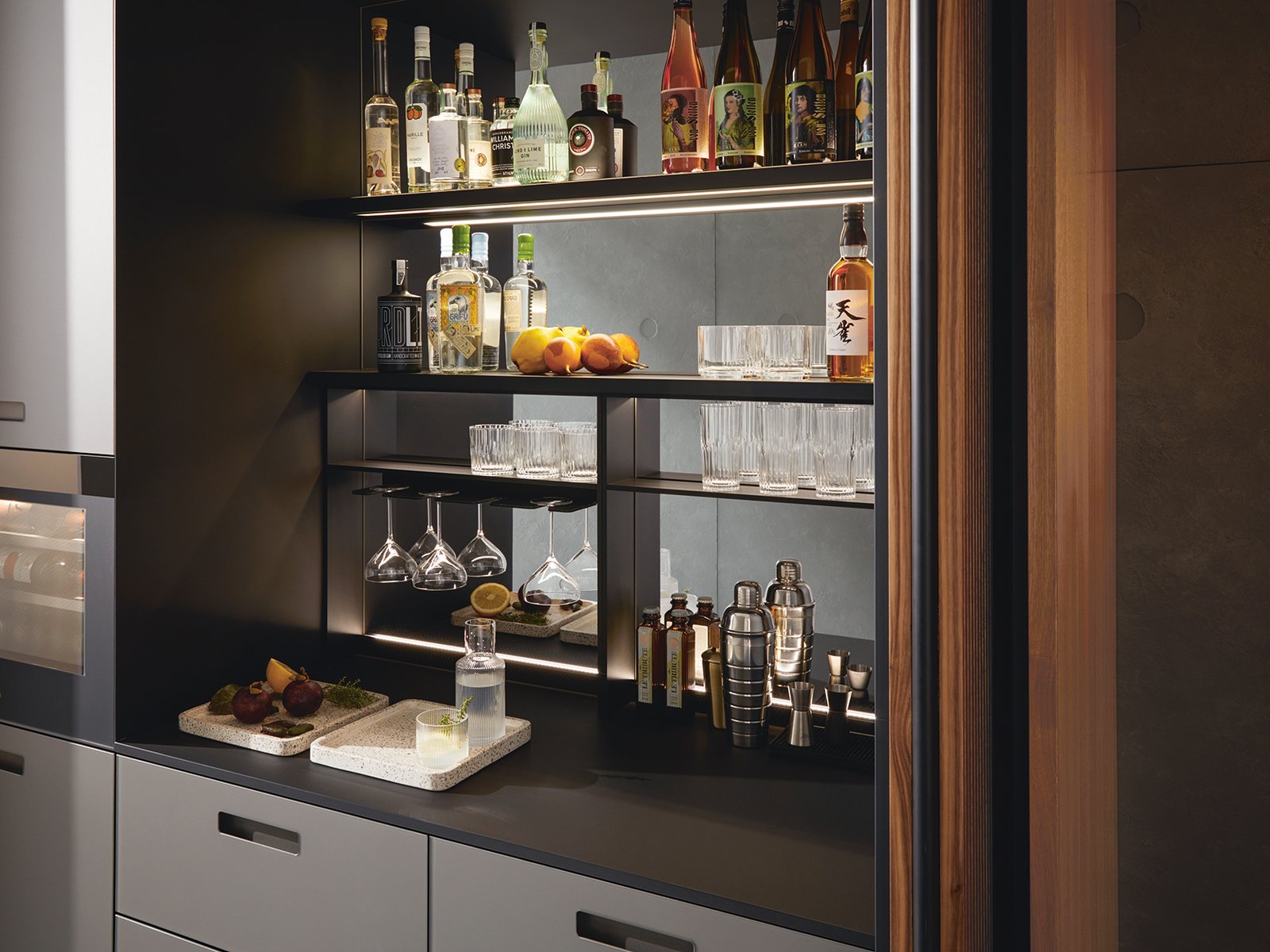 Het pocketsysteem weet ook te overtuigen als solo-entertainer: als barkast met gespiegelde nissen wordt elke avond met vrienden een stijlvolle ervaring.