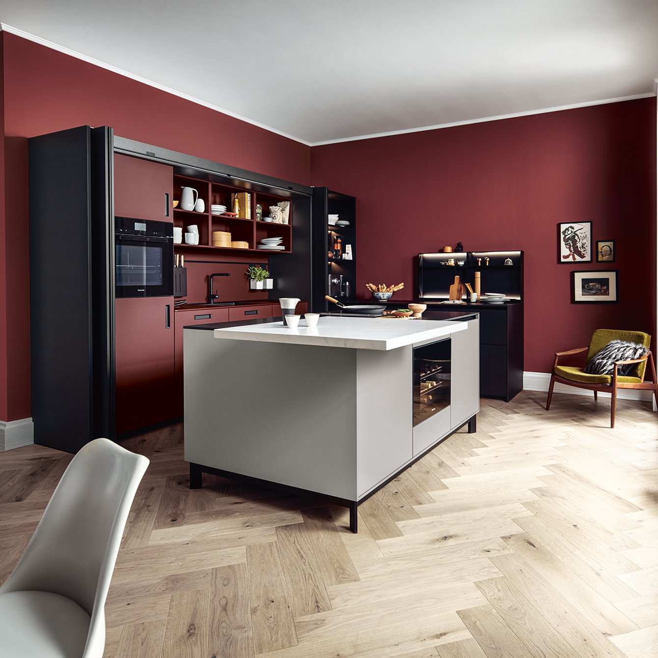 Een next125 kookeiland laat zich individueel ontwerpen en past zich daarmee flexibel aan uw wensen aan. Gebruik b.v. geïntegreerde regalen om naast uw (kook)boeken ook andere decoratieve elementen mooi neer te zetten.