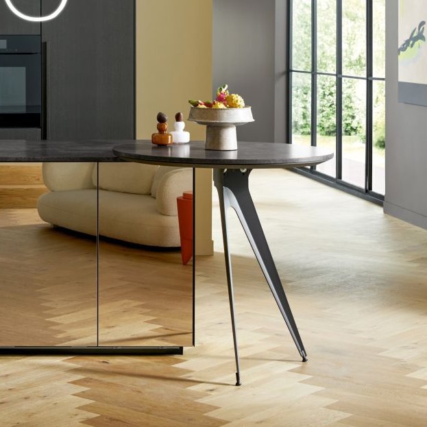Vandaag verovert de keuken steeds meer de woonruimte en heeft de beklemming van haar vier muren verlaten. Wat ligt meer voor de hand dan deze trend op te pakken en van functionele ruimtes leefruimtes te maken. Het open concept en losse meubels zorgen voor gezelligheid, zoals bijvoorbeeld de nieuwe aanzettafel of de kooktafel, die zich perfect in elke omgeving voegen en de gast bij het gebeuren betrekken, het next125 Pocketsysteem dat de keuken achter grote deuren laat verdwijnen, of het eiland op poten dat bijna lijkt te zweven.