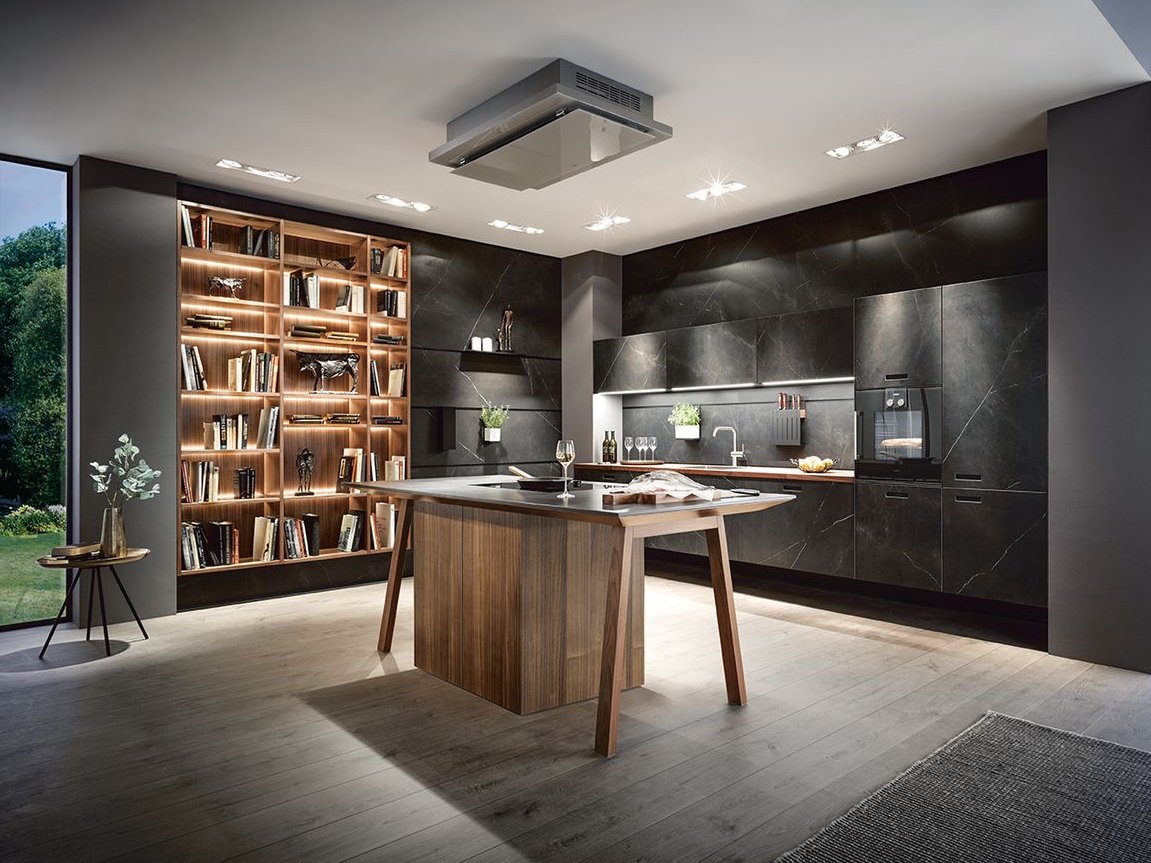 Bij een moderne keukenarchitectuur wordt de hele ruimte erbij betrokken. De kook- en eetruimte smelten samen tot een plek om te beleven en te genieten, waarbij het design van de omgeving een belangrijk element is. Voor een harmonieus totaalplaatje is er een grote tafel met uitnodigende bank ontworpen.