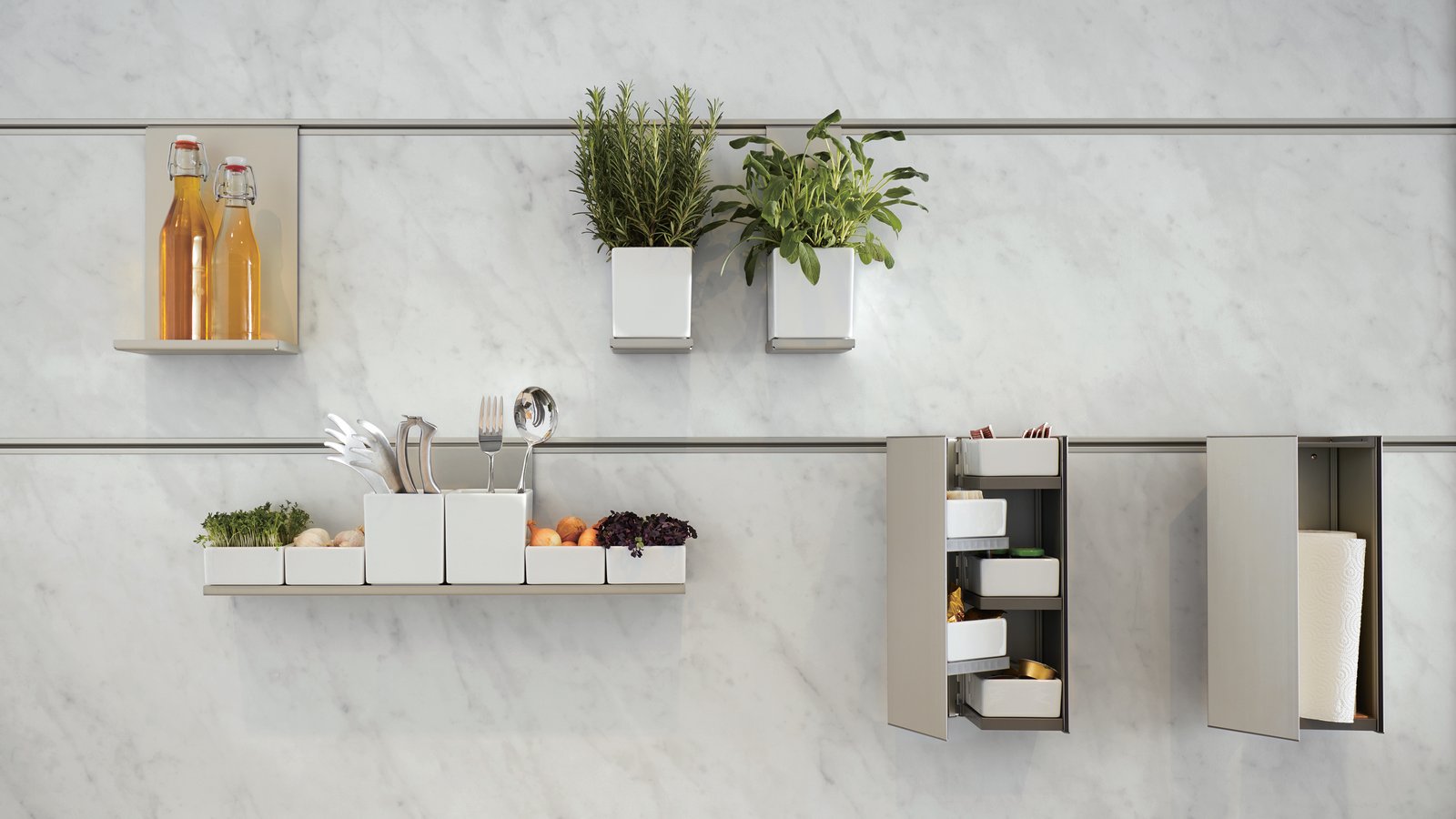 Het next125 Cube-systeem maakt het werken in de keuken veel eenvoudiger en sneller. Personaliseer de keukenplanning door gebruik te maken van het paneelsysteem en creëer een visueel aantrekkelijke oplossing die bovendien praktische voordelen biedt. Het systeem maakt indelingen mogelijk in de nis tot volledige wanden.