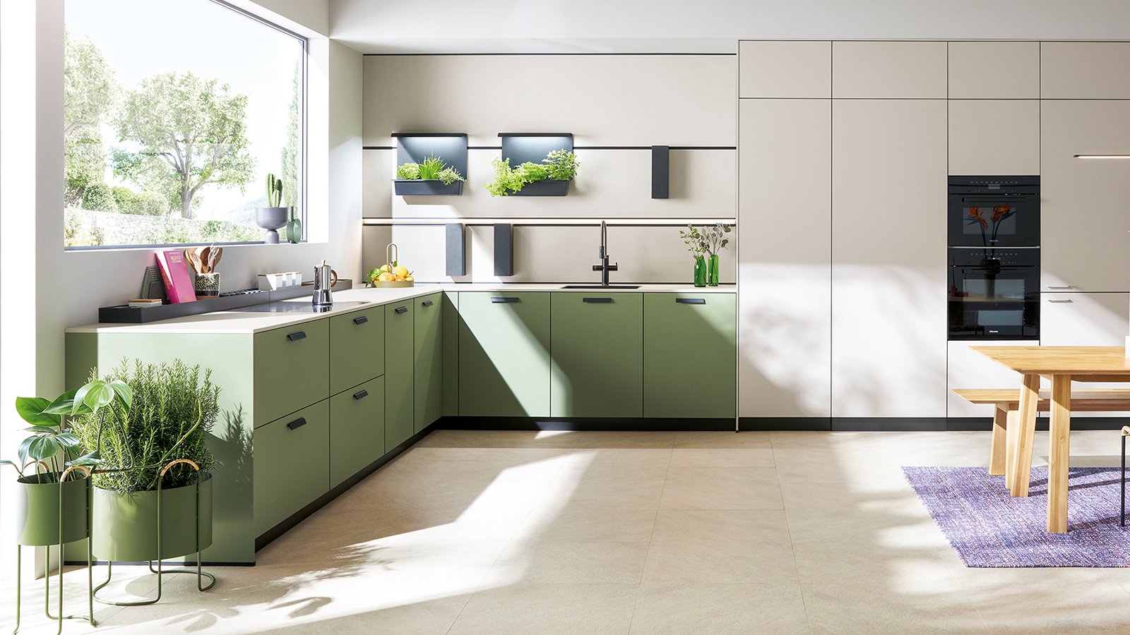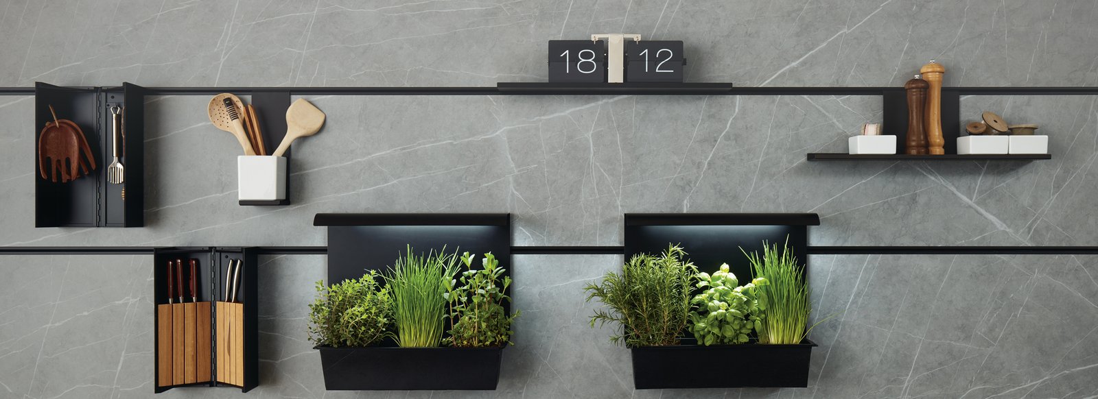 Wat is er nog mooier dan koken met verse kruiden! Dankzij de paneeltuin met geïntegreerde verlichting blijven kruiden langer vers – dit komt vooral van pas in de donkere delen van de keuken. De verlichting wordt via een timer geregeld, die 14 uur lang verlicht en daarna gedurende 10 uur is uitgeschakeld. Zo hebt u altijd verse kruiden binnen handbereik en hoeft u niet meer zo vaak naar de markt.